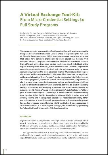 T. Fransson, R. Abeyweera, S. Anbahan Ariadurai, J. Jayasuriya: A Virtual Exchange Tool-Kit: From Micro-Credential Settings to Full Study Programs (click pict for link)