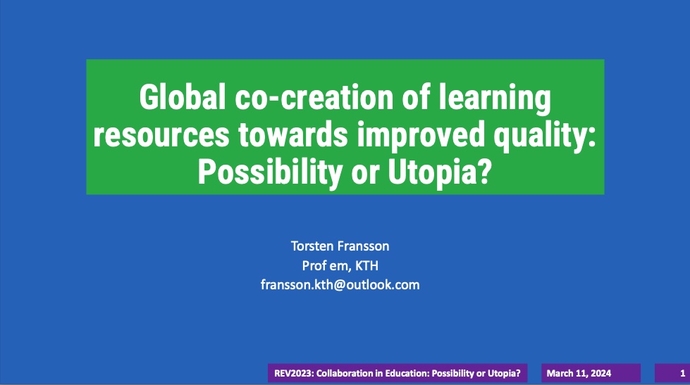 T. Fransson: Global co-creation of learning resources towards improved quality: Possibility or Utopia? (click pict for link)